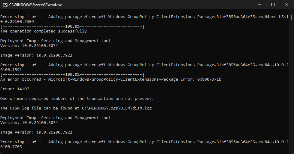 dir /b %SystemRoot%\servicing\Packages\Microsoft-Windows-GroupPolicy-ClientExtensions-Package~3.mum >List.txt dir /b %SystemRoot%\servicing\Packages\Microsoft-Windows-GroupPolicy-ClientTools-Package~3.mum >>List.txt