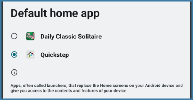 On this next screen, you may have the choice of different apps, and you should set it to the original Home app, the one that came with your device from the start. But which one is it?